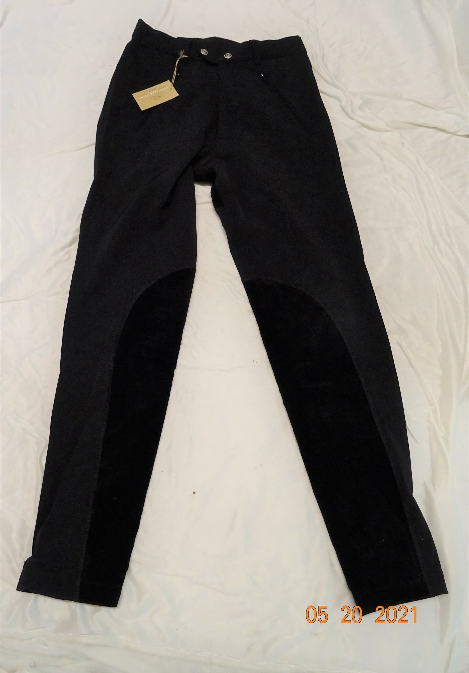 Arbeits reithose lang mit Besatz an Gesäß und Innenbeinen in Samtoptik, an den Beinenden mit Velco Verschluss und Reißverschluß Seitentaschen